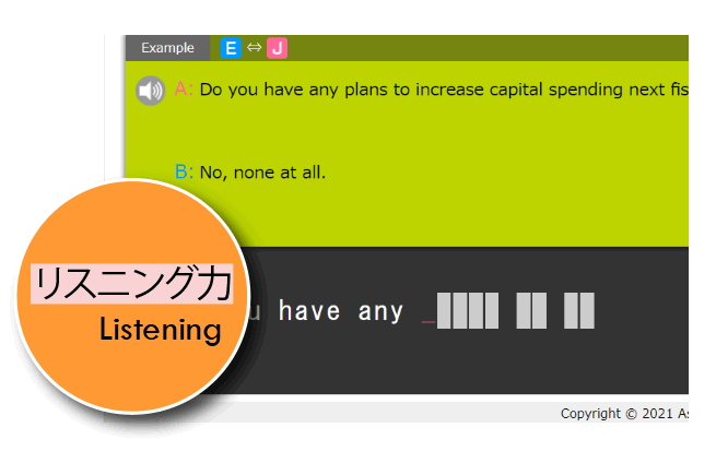 語彙力(Vocabulary)、速読力(Reading)、文法・読解力(Grammer)、リスニング(Listening)の各パートごとに学び、TOEIC®スコアのUPを目指します。